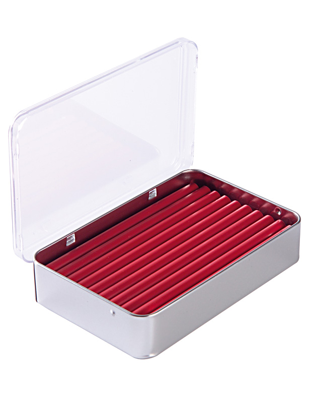 Conditionnés dans une boîte métallique.