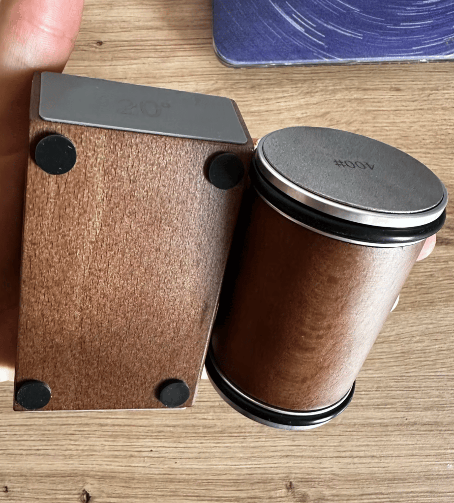 Pour un affûtage précis, le maintien d’un angle constant est essentiel. Cet affûteur est doté d’un support magnétique multi-angle, offrant des angles de 15 et 20 degrés. Choisissez l’angle qui correspond à vos besoins, que ce soit pour les couteaux de cuisine traditionnels ou pour des coupes ultra-fines nécessitant une netteté accrue. - Bois naturel et aimants puissants