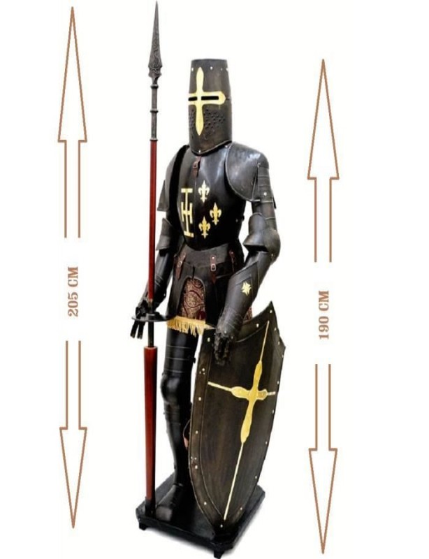 - Éléments Inclus : Livrée avec son socle en bois, sa lance et son bouclier, cette armure est prête à être exposée dans toute sa splendeur.