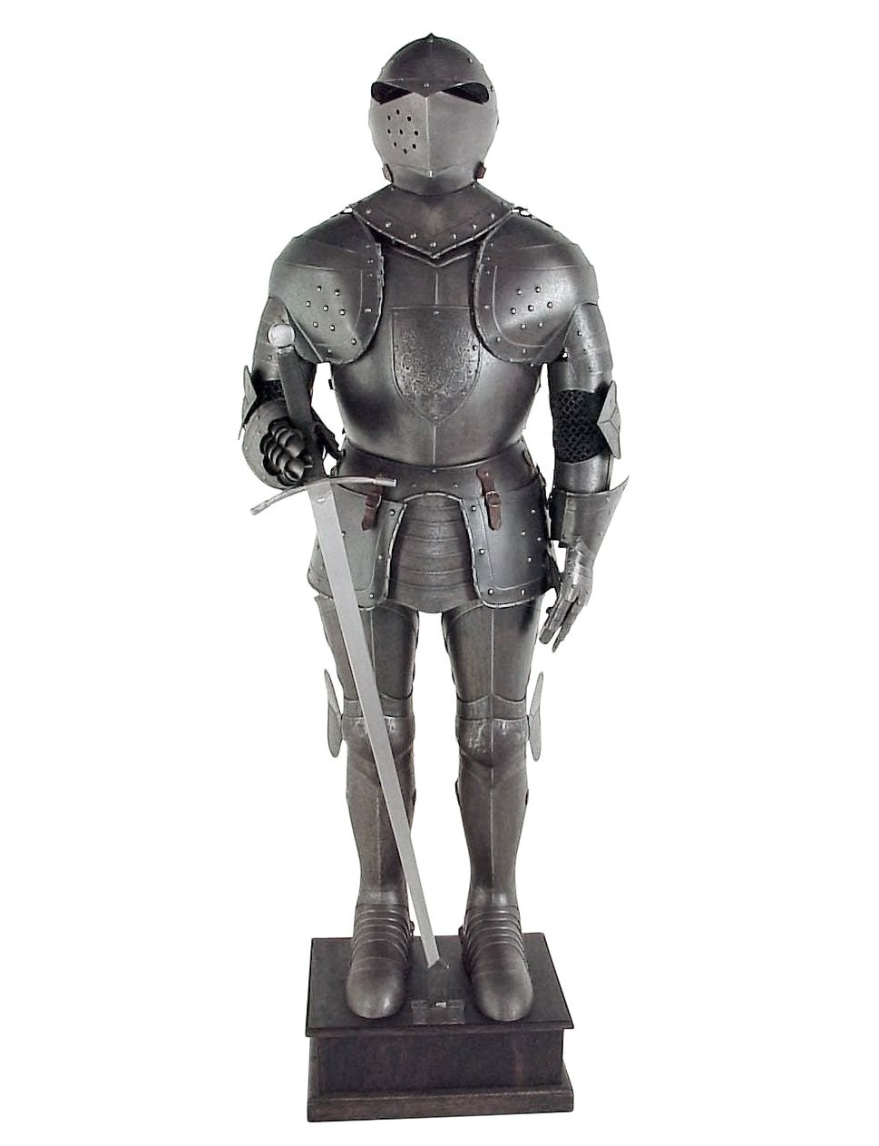 Aujourd’hui, cette réplique d’armure médiévale brunie reprend fidèlement le style des armures de chevaliers du XVe siècle. Chaque pièce est forgée à la main selon les techniques traditionnelles, garantissant une finition authentique et historique. Un support en bois est inclus pour exposer cette pièce exceptionnelle dans votre collection, un musée ou une salle d’armes.