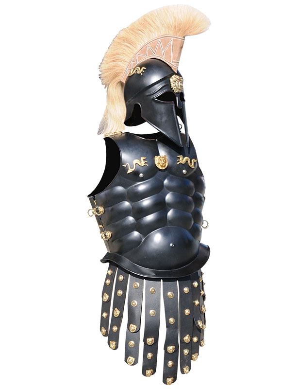 Cuirasse et casque noir corinthien d’hoplite