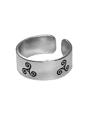 Bague en argent ajustable, motifs Triskels.