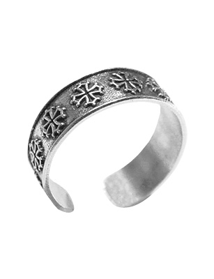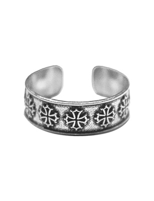 Bague en argent ajustable, motifs croix occitanes.
