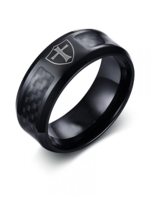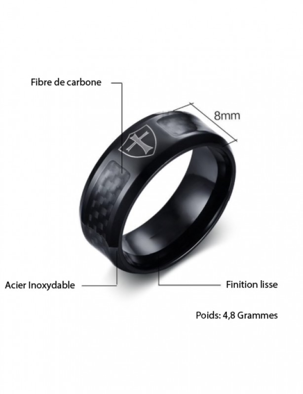 Bague des templiers anodisée noire avec incrustation de carbone et blason templier gravé dessus, cette anneaux noir est sobre, élégant et discret, il s’adaptera facilement à vos tenues quotidiennes ou vos tenues de cérémonie. Elle peut également faire le cadeaux parfait à offrir pour une occasion ou juste pour le plaisir.