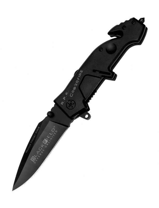 Couteau de sauvetage avec ouverture assistée par ressort.