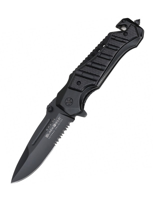 Poignée en métal léger avec coupe ceinture, brise verre et clip pour ceinture.