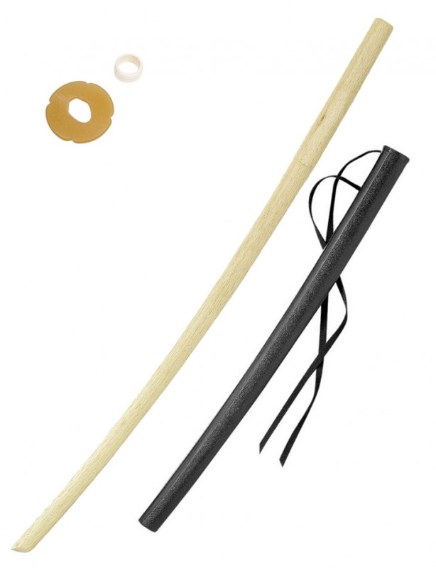 Il est vendu avec une saya en plastique moulé qui possède un cordon imitant le sageo non tressé pour l’entraînement.