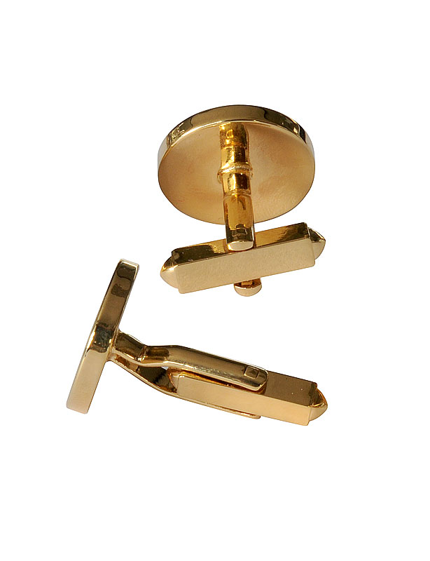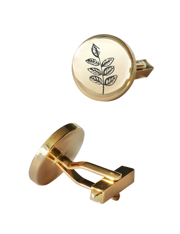 Lot de deux boutons de manchette dorés avec une branche d’acacia.