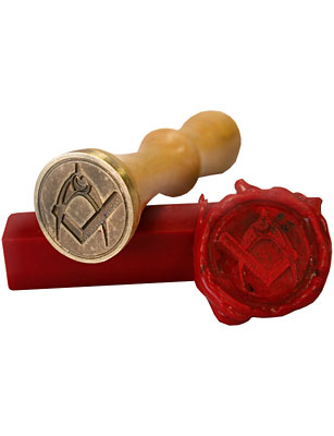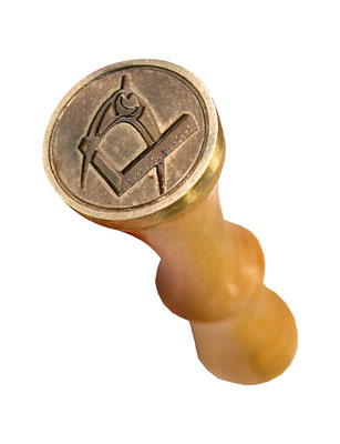 Cachet à cire avec symboles maçonniques : équerre et compas.