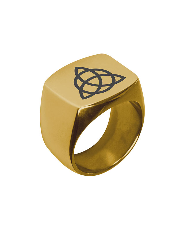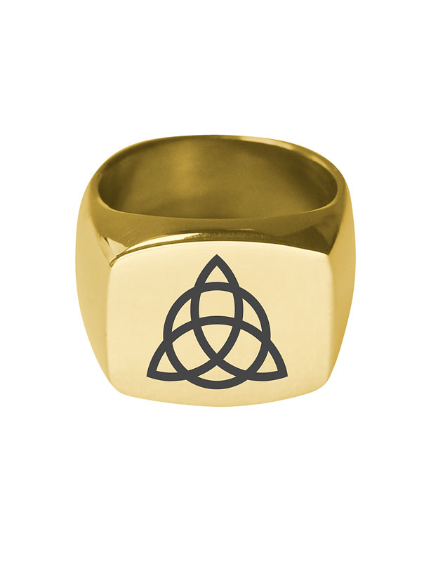 Chevalière en acier inoxydable doré avec Triquetra