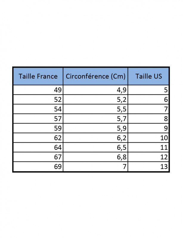 Veillez à bien choisir votre taille de bague en vous aidant du tableau.