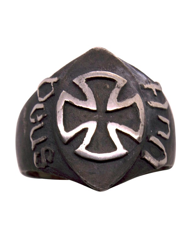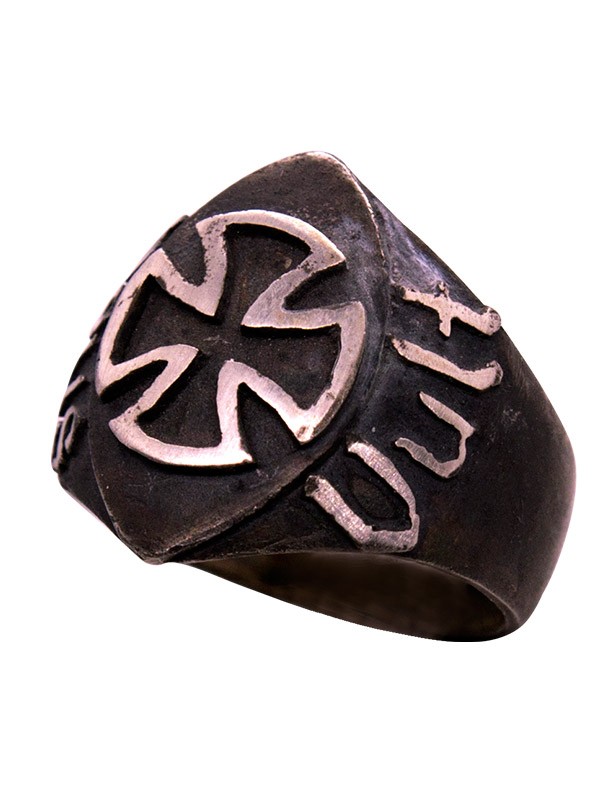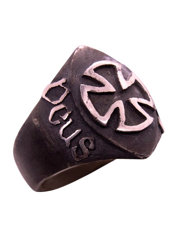 Bague en argent 925 o/oo avec croix patée et inscription Deus Vult.