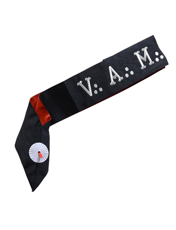 Grade : 1er et 2e Ordre du Rite Français. Type : Cordon. Matière : Ruban moiré. Dimensions : 11 cm de large. Couleurs : Noir et Rouge. Réversibilité : Dos réversible.