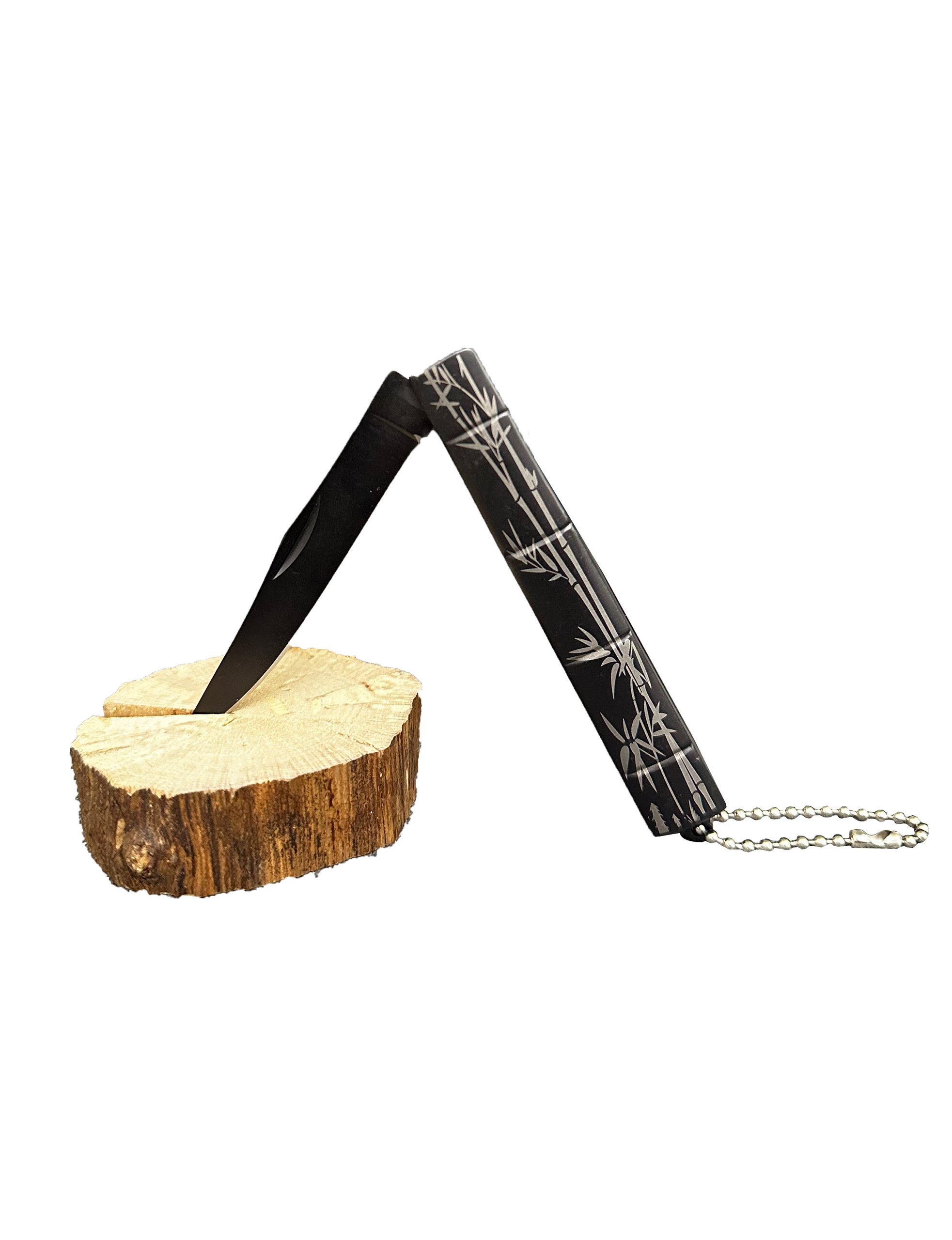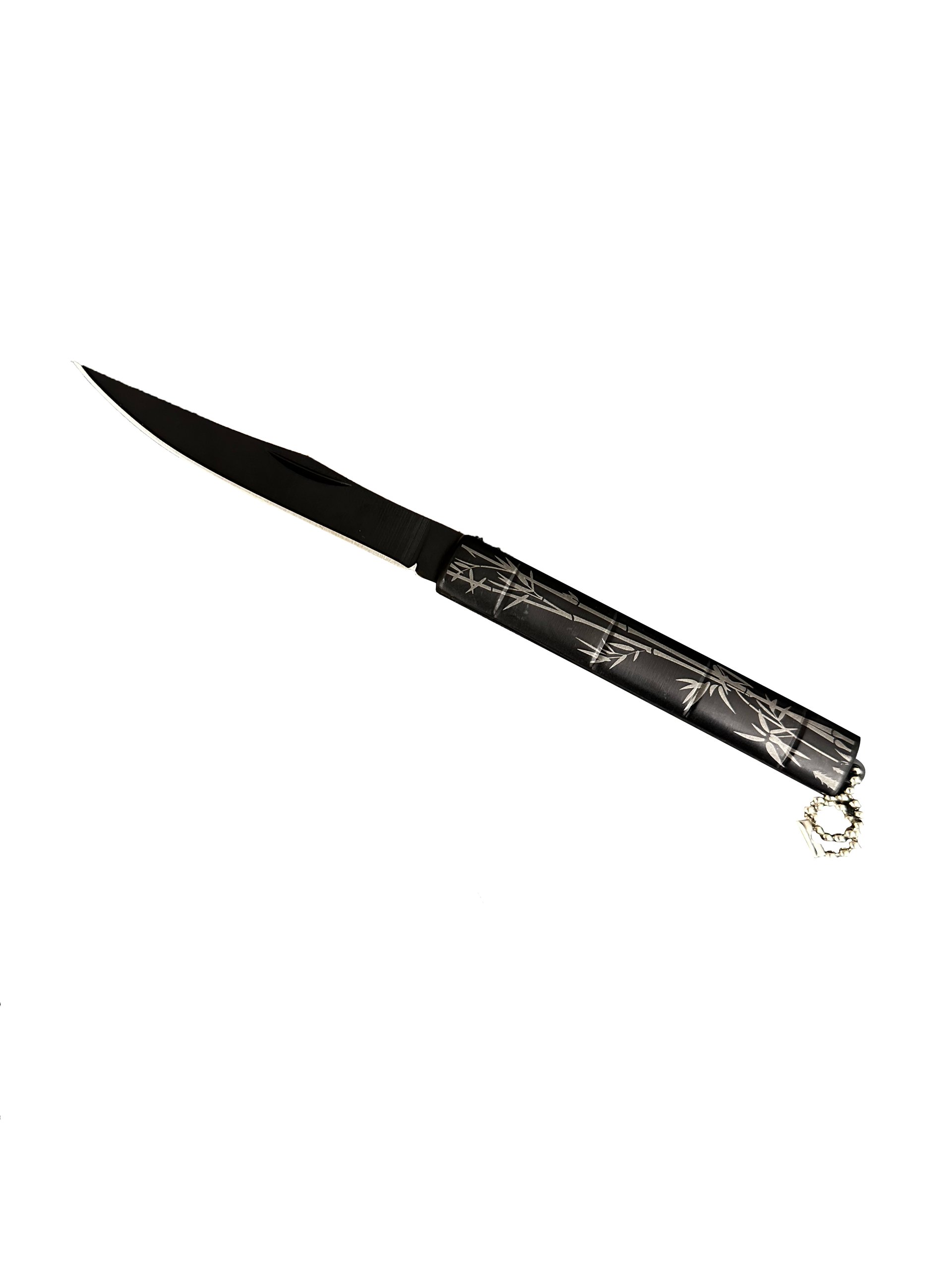 Ce couteau de poche pliant est conçu pour allier praticité et élégance. Sa lame en acier noirci offre une excellente durabilité et un tranchant précis, idéal pour les amateurs de couteaux de qualité.