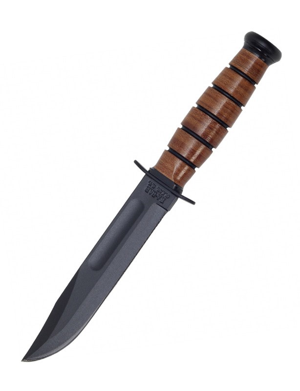 Lame en acier 1095 inoxydable ayant une dureté de 57° Rockwell revêtue de noir.