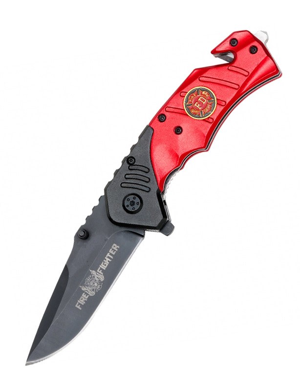 Ce couteau comporte un brise verre et une pince qui permet de porter le couteau à la ceinture