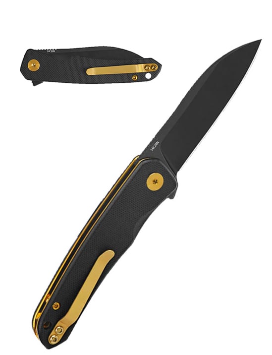 - Élégance et Durabilité : La combinaison de son design noir avec des touches dorées en fait un couteau très élégant.