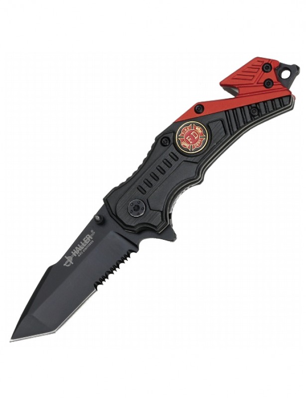 Couteau de pompier de couleur rouge et noir.