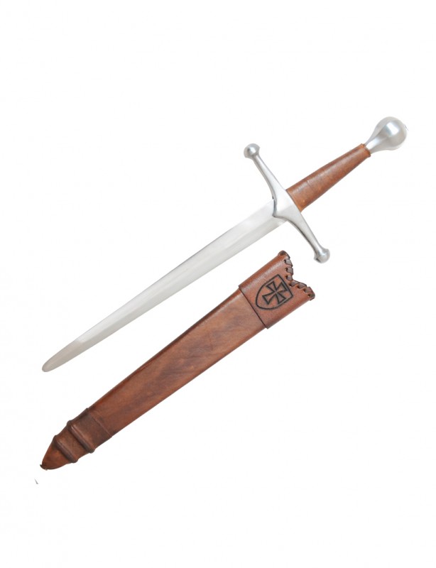 Dague allemande forgée : Dague de semi-combat, avec un pommeau boule avec des facettes.