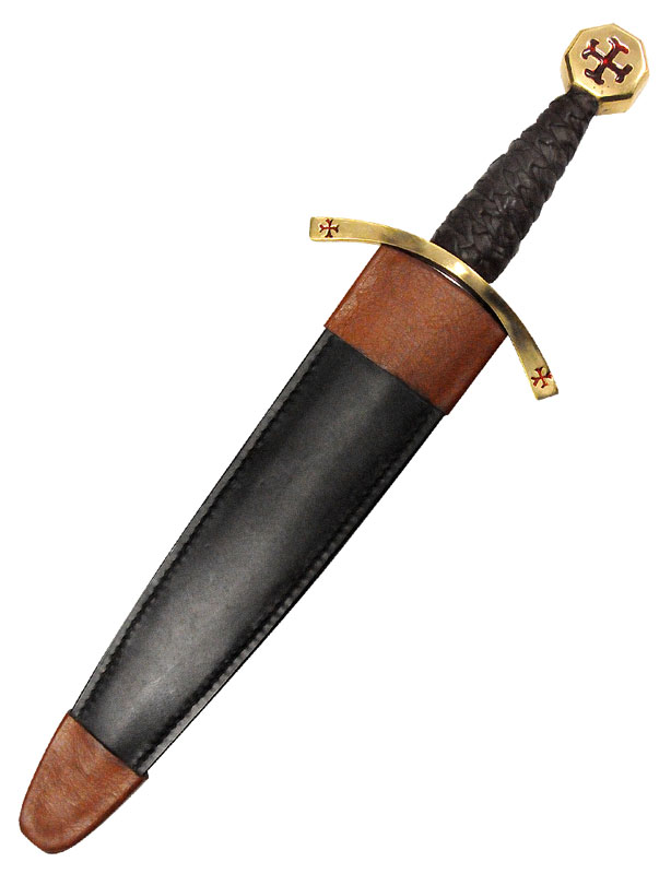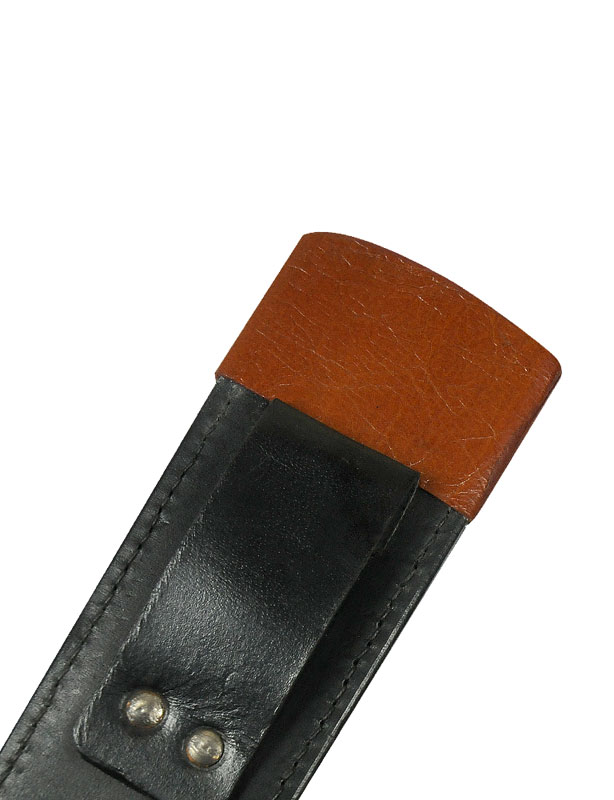 – Fourreau : cuir noir et brun avec attache (port de la dague à la ceinture)