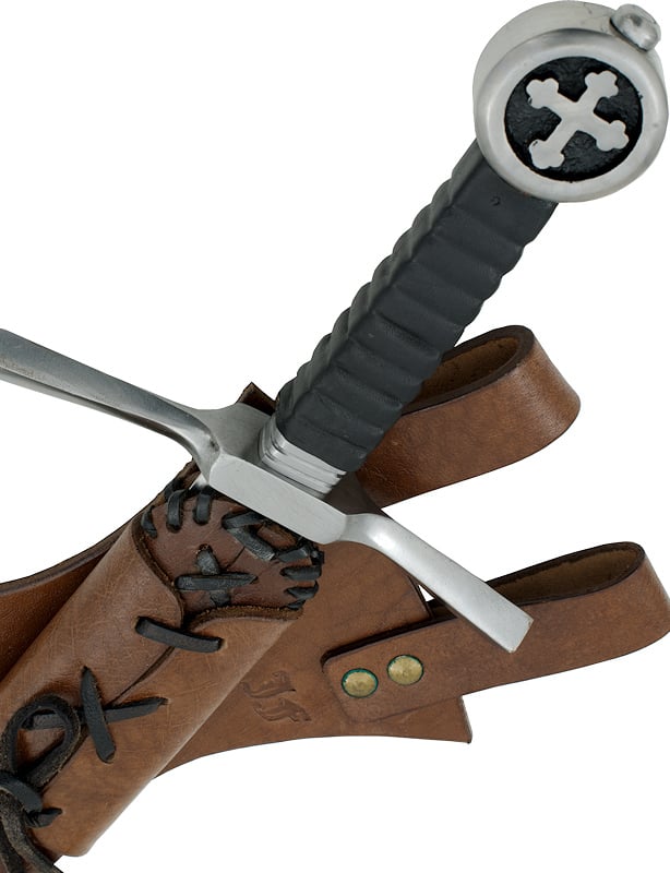 – Fourreau et porte-épée en cuir marron.
