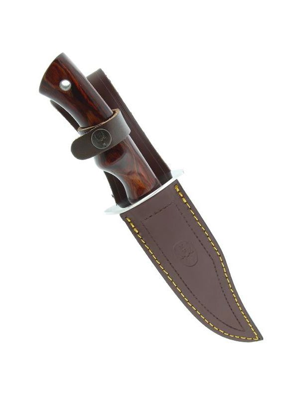 Le manche ergonomique en pakka wood assure une prise en main ferme et confortable. Ce matériau composite, issu de bois stratifié et de résine, combine l’esthétique du bois naturel à une excellente résistance à l’humidité et aux variations de température. La garde en acier inoxydable intégrée protège efficacement la main contre tout glissement vers la lame, renforçant la sécurité lors de l’utilisation.