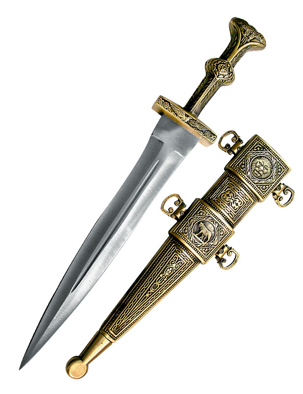 Plongez au cœur de l’histoire romaine avec cette magnifique reproduction de la dague impériale romaine, communément appelée pugio. Utilisé par les légionnaires romains, le pugio n’était pas seulement une arme de combat rapproché, mais aussi un symbole de statut social et de pouvoir au sein de l’armée romaine. Cet objet, porté par les officiers et les soldats de rang, incarnait la discipline et la grandeur de l’Empire.