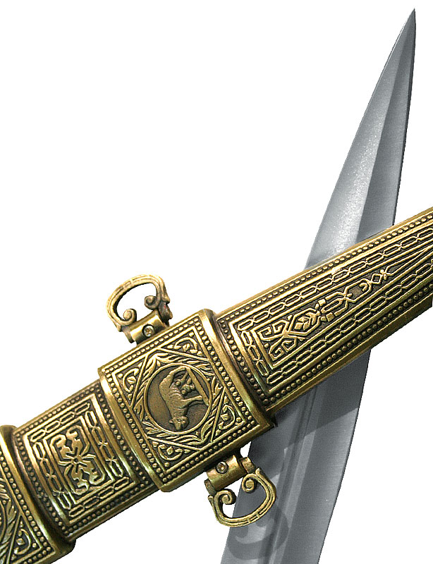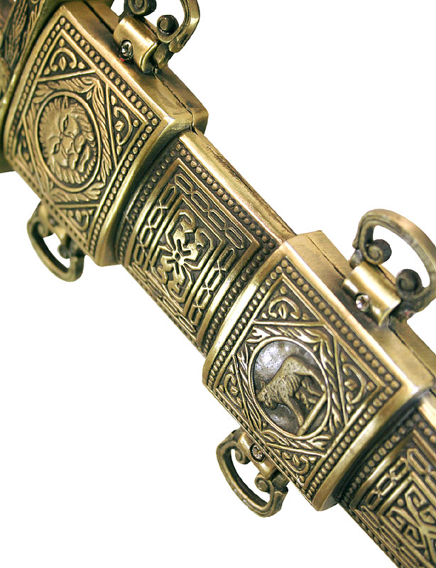 - Fourreau inclus : Le fourreau, pesant 290 g, est conçu en métal moulé avec une finition en laiton vieilli pour une apparence authentique.