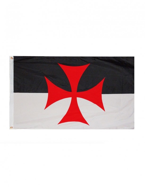 Drapeau avec croix de l'ordre du temple, de couleur noir et blanc avec croix rouge des Templiers.