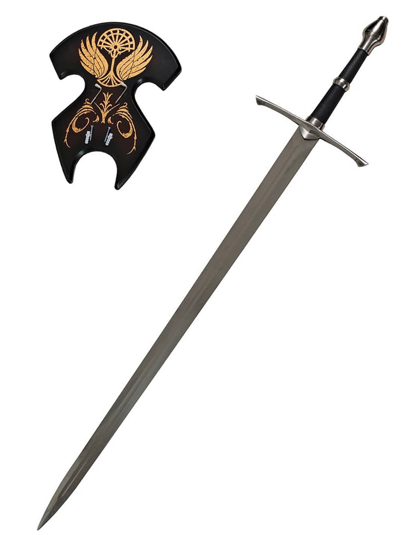 Découvrez une sublime réplique de l’épée portée par Aragorn Strider, le rôdeur et héritier légitime du trône du Gondor dans la célèbre trilogie Le Seigneur des Anneaux. Ce modèle, inspiré de l’arme emblématique vue à l’écran, reflète parfaitement l’esprit du personnage : noble, courageux et mystérieux.
