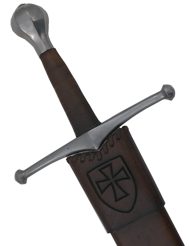 - Fourreau : Cuir brun avec une gravure de croix pattée.