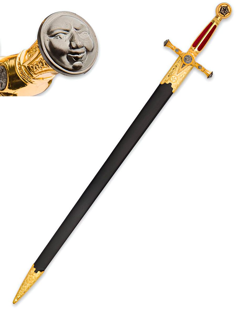 Ce modèle arbore les symboles fondamentaux de la Franc-Maçonnerie — l’équerre et le compas — finement représentés sur la garde et le pommeau. Le manche recouvert de velours rouge évoque la sagesse et la noblesse de l’engagement maçonnique. Conçue pour les vénérables maitres et aussi comme objet de représentation, cette épée est parfaite pour une loge, une vitrine ou une cérémonie.
