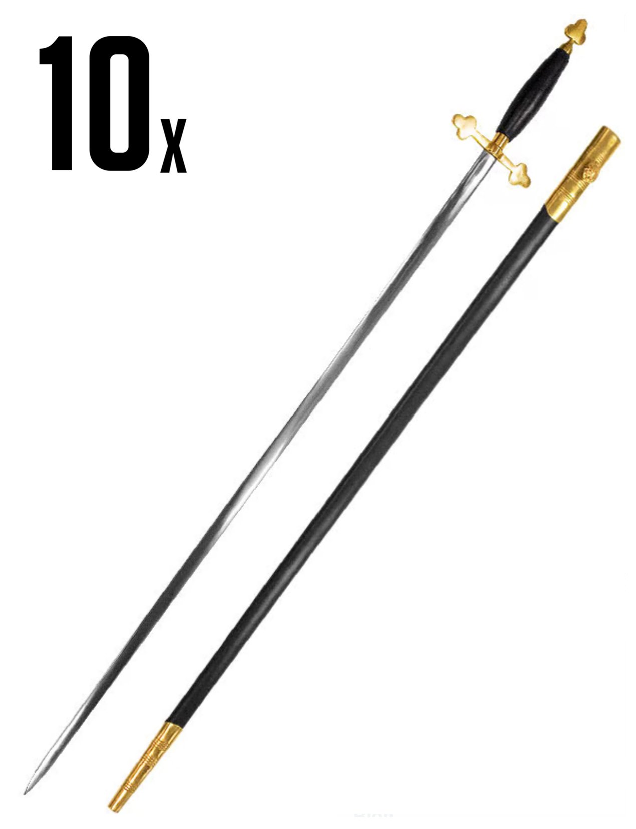 Lot de 10 Épées maçonniques fines de cérémonie avec pommeau tréflés en laiton (modèle standard du Rite Rectifié).