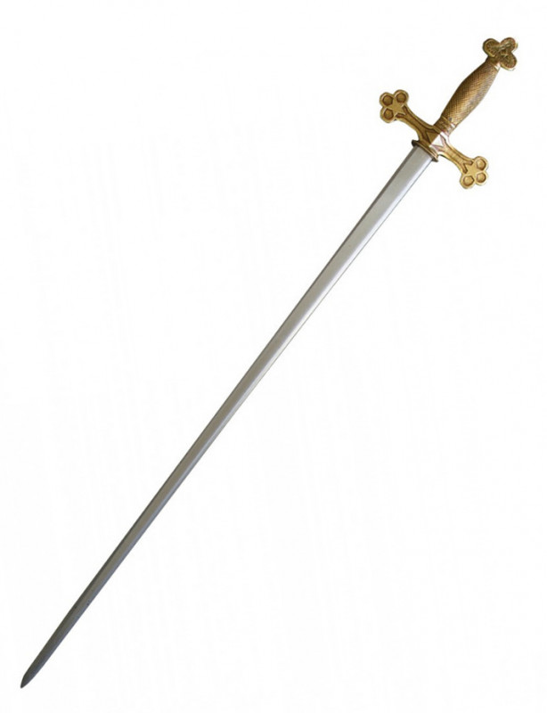 Épée maçonnique inspirée du XVIIIe / XIXe siècle, poignée en métal doré vieilli.