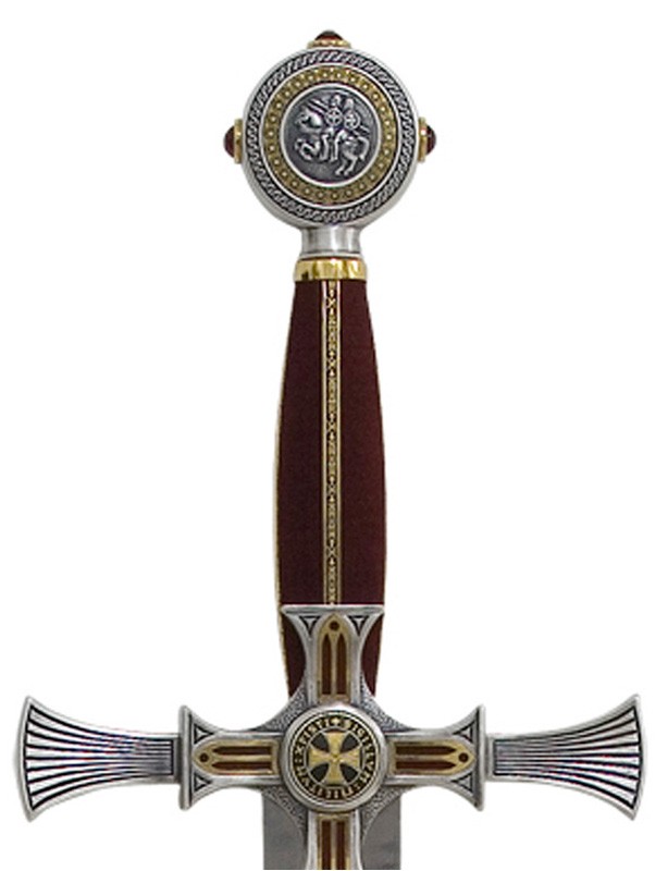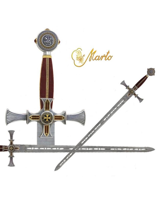 Symbole de foi, de discipline et de bravoure, l’épée templière incarne l’esprit martial et spirituel des chevaliers du Ordre du Temple. Fondé en 1118, cet ordre militaire sacré avait pour mission de protéger les lieux saints et d’assurer la sécurité des pèlerins sur les routes de Terre sainte. Inspirée des épées espagnoles de l’époque de Philippe II, cette épée rend hommage à l’âge d’or des Templiers, lorsqu’ils représentaient la force de frappe la plus organisée et redoutée des croisades. Chaque détail de cette réplique évoque leur devise emblématique, Non nobis, Domine, non nobis, sed tuo da nomini gloriam, rappelant que leur combat était guidé par l’honneur et la foi plutôt que par la gloire personnelle.