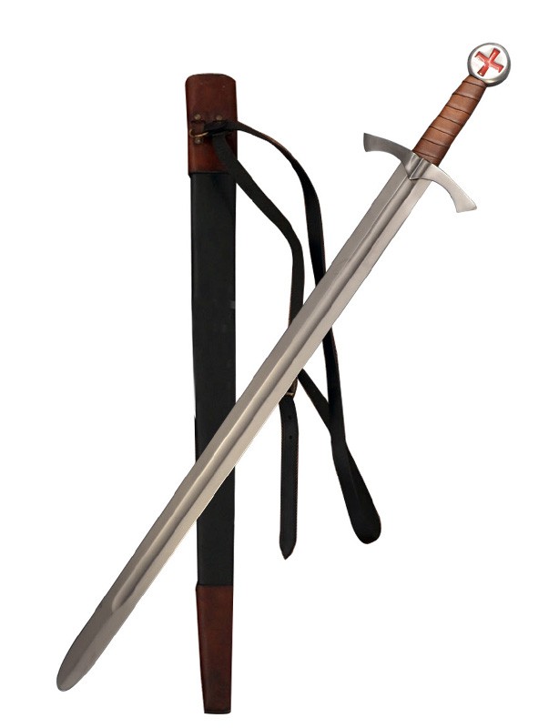 - Symbole des Templiers : La croix pattée rouge ornant le pommeau fait de cette épée une pièce unique, rappelant l’iconographie et les valeurs des chevaliers Templiers.