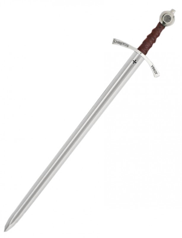 Epée de médiévale Templière a une plus grande gorge des deux côtés de la lame en acier à haute teneur en carbone, qui a été percée d'une Croix "Ordre des Templiers" . Comporte également une garde gravée et une pièce de monnaie insérée dans le pommeau.