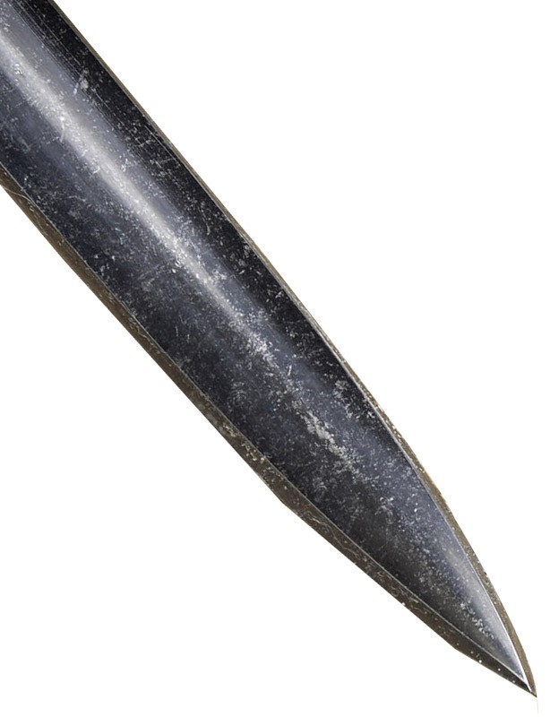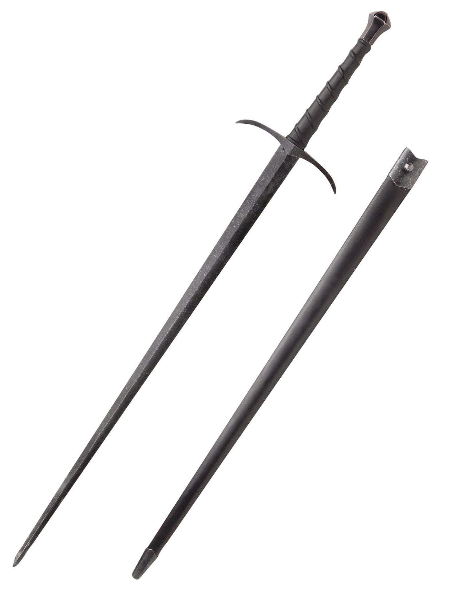 Pensée comme une véritable épée de combat, elle se distingue par sa rapidité et son équilibre remarquable malgré des dimensions imposantes. Sa lame longue et élancée permet l’exécution des techniques historiques de « mastercut », propres aux épées longues de la fin du Moyen Âge, capables de frapper avec puissance tout en conservant une grande précision. La finition assombrie de la lame renforce son caractère martial et évoque les armes trempées par l’usage et les campagnes militaires.