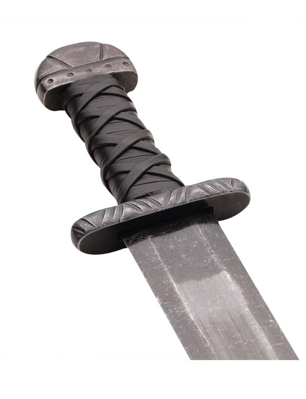 Poignée : acier et cuir, pommeau Viking prononcé