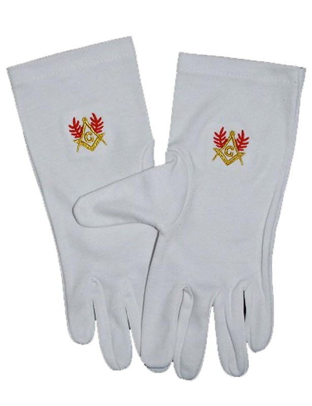 Gants maçonniques brodés rouge et or.