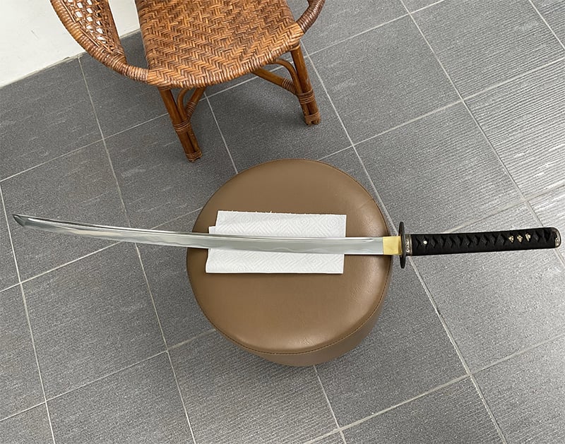 - Longueur de la lame (Nagasa) : ~2,35 Shaku (~71 cm de l’habaki à la pointe).