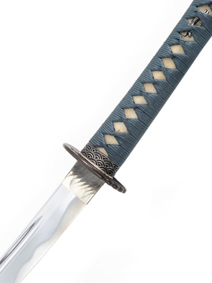 - Sugata (Style de lame): Lame en alliage plaquée avec Bohi et Chu-Kissaki, Hamon sur lame, lame non tranchante.