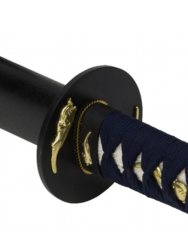 – Tsuba : acier anodisé en noir, avec éléments en métal doré