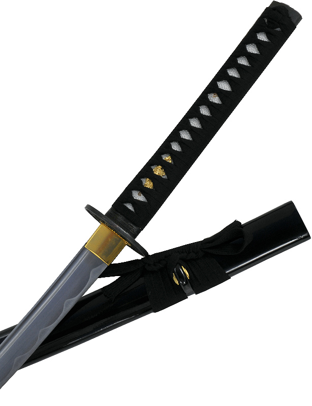 - Accessoires de Qualité : La poignée en matière plastique blanche imitation peau de raie et l’ito noir offrent une prise en main confortable. La tsuba en métal moulé noir vieilli ajoute une touche de rusticité.