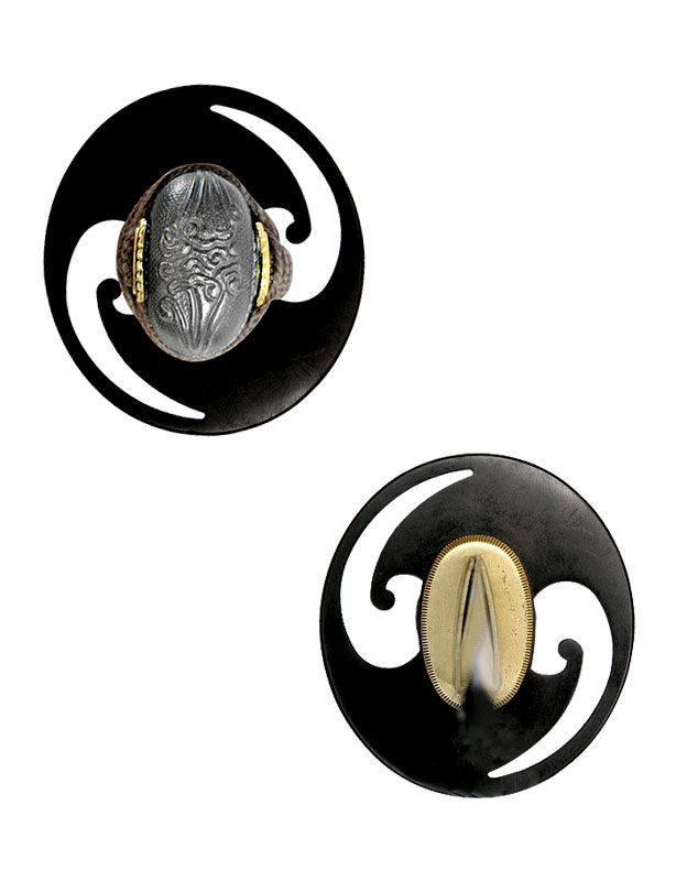 – Tsuba montée ovale : 7,5 x 8,1 cm