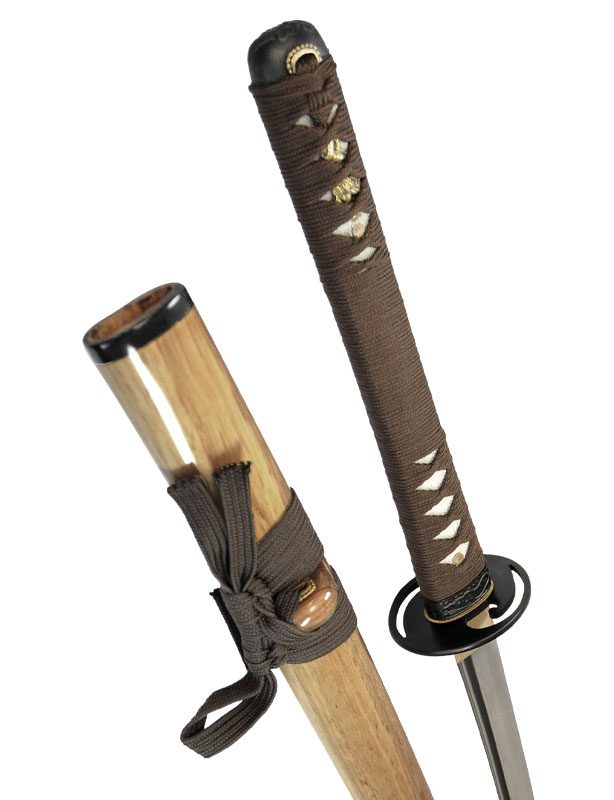 Saya en bois naturel verni. Ito et sageo marron. Mune : hikushi.