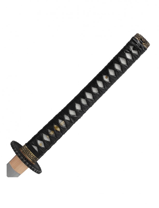 Tsuka (poignée) recouverte de peau de raie blanche.