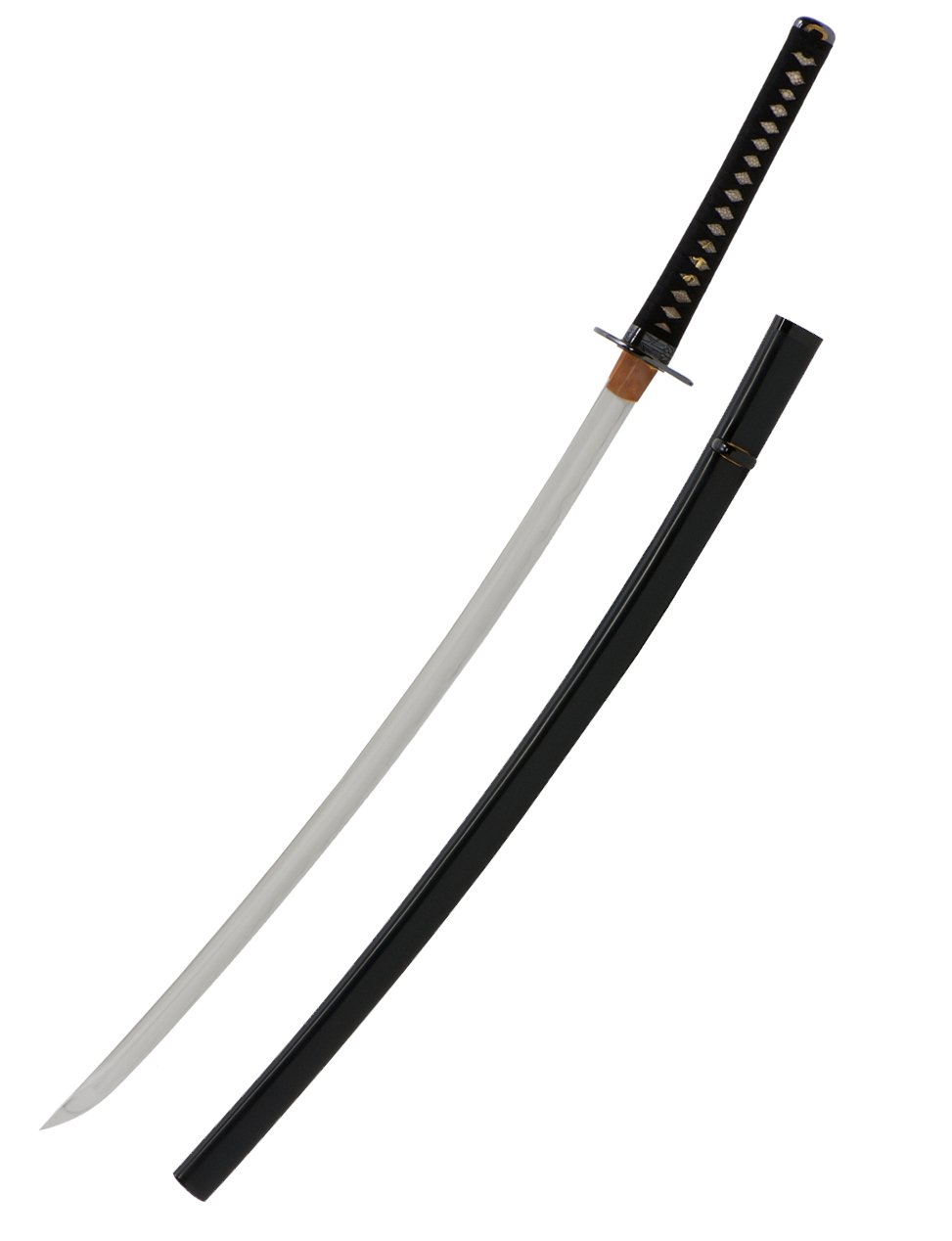 Dans le style Shinogi Zukuri, la lame est forgée dans la forge Citadel, le habaki en cuivre argenté et les seppa en laiton argenté ajoutent une touche de luxe. La poignée enveloppée de soie japonaise noire offre une prise ferme et confortable, tandis que le fourreau noir poli met en valeur la beauté intemporelle de cet instrument d’art martial.