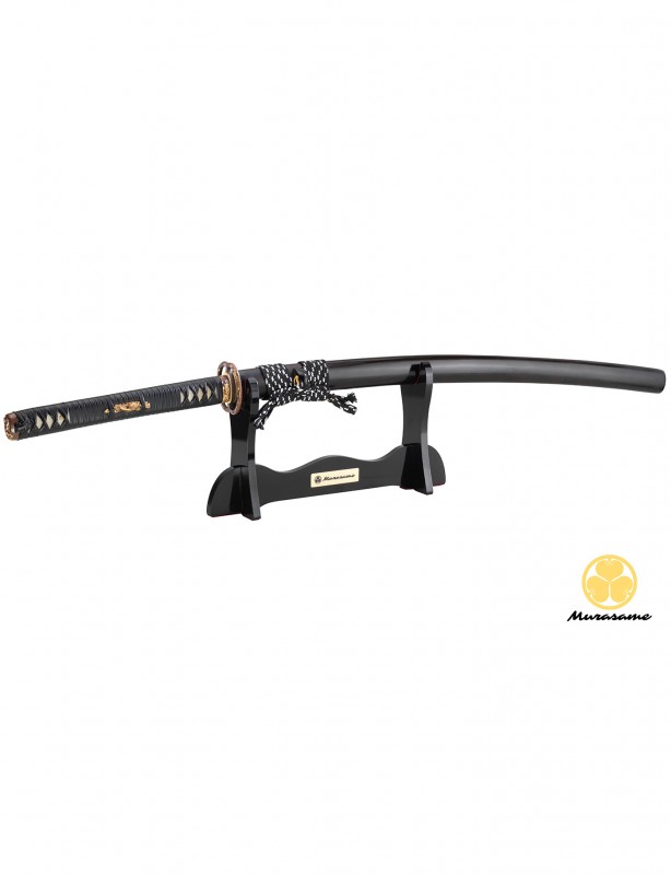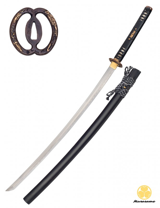 Forgée main, lame courbe avec Nohi et Chu-Kissaki (pointe). Véritable Hamon sur la lame fait à l’argile. La dureté du Mune est de 50° HRC et du Ha (tranchant de la lame) est de 60° HRC Rockwell. Lame Rasoire.