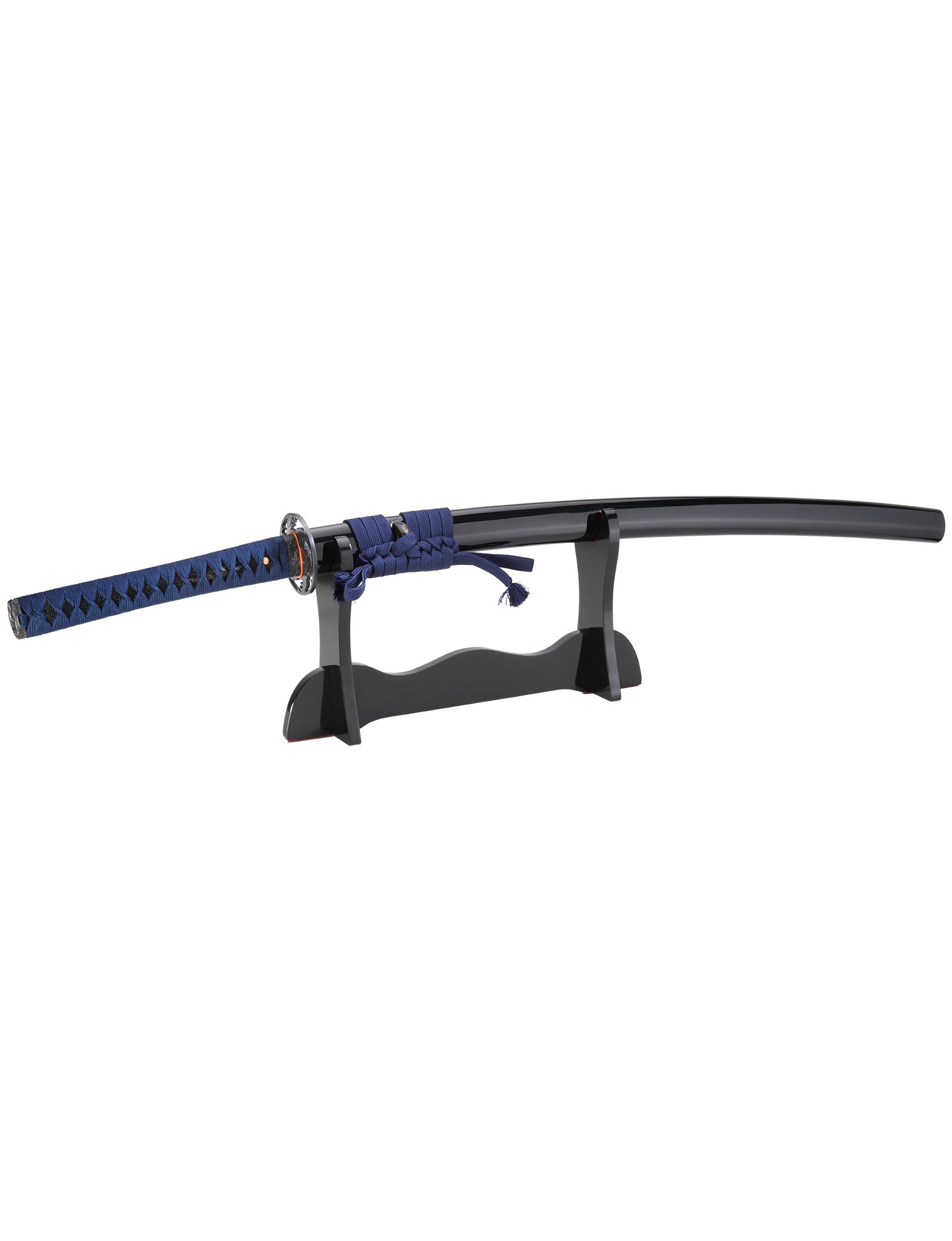 - Saya (Fourreau) : Bois exotique massif, laqué noir, courbé selon le Sori. Koi-guchi, kurikata et kogiri en corne de buffle.